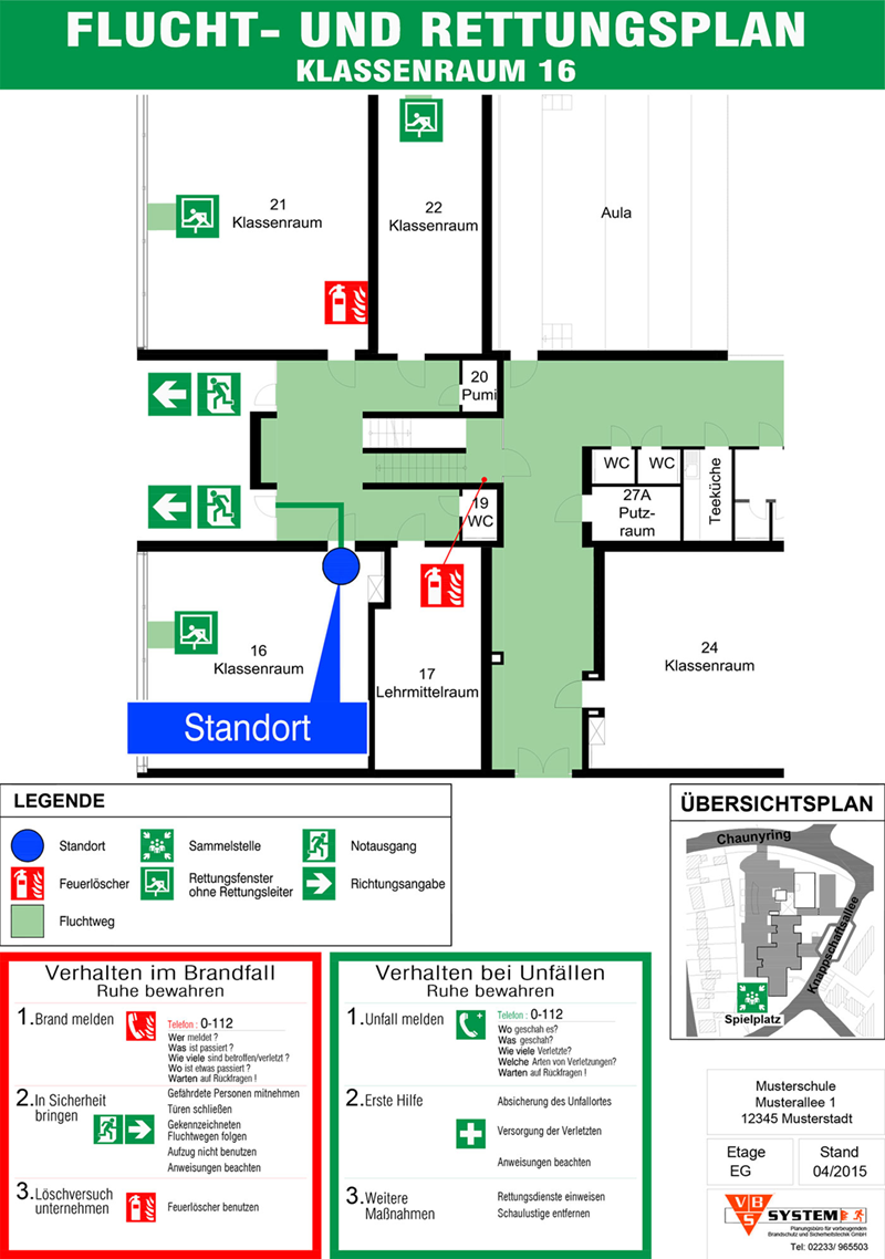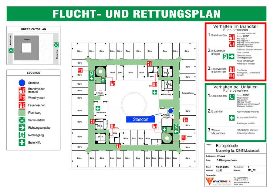 Flucht- und Rettungsplan nach DIN ISO 23601 und BGV A8 und Arbeitstättenverordnung § 55